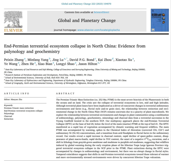 本网讯 9月17日,我校邵龙义和鲁静教授团队张培新博士作为第一作者的论文“End-Permian terrestrial ecosystem collapse in North China: Evidence from palynology and geochemistry”在蒙古国乌兰巴托举行的第40届国际有机岩石学会(The Society for Organic Petrology,TSOP)会议上被授予了备受瞩目的2024年度Dal Swaine奖。这是对我校师生在煤地球化学和环境地球化学领域杰出贡献的高度认可。据悉,这是我校第二次也是中国第三次获得该奖项,以往获奖者主要来自美国、新西兰、澳大利亚、加拿大、日本、德国、瑞士等国家。