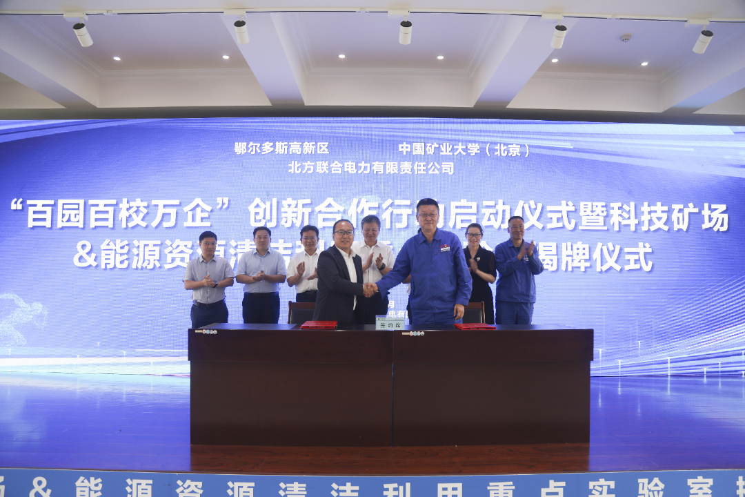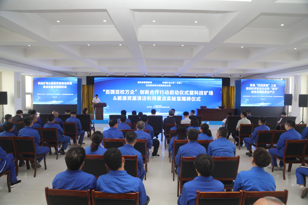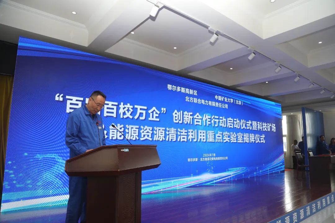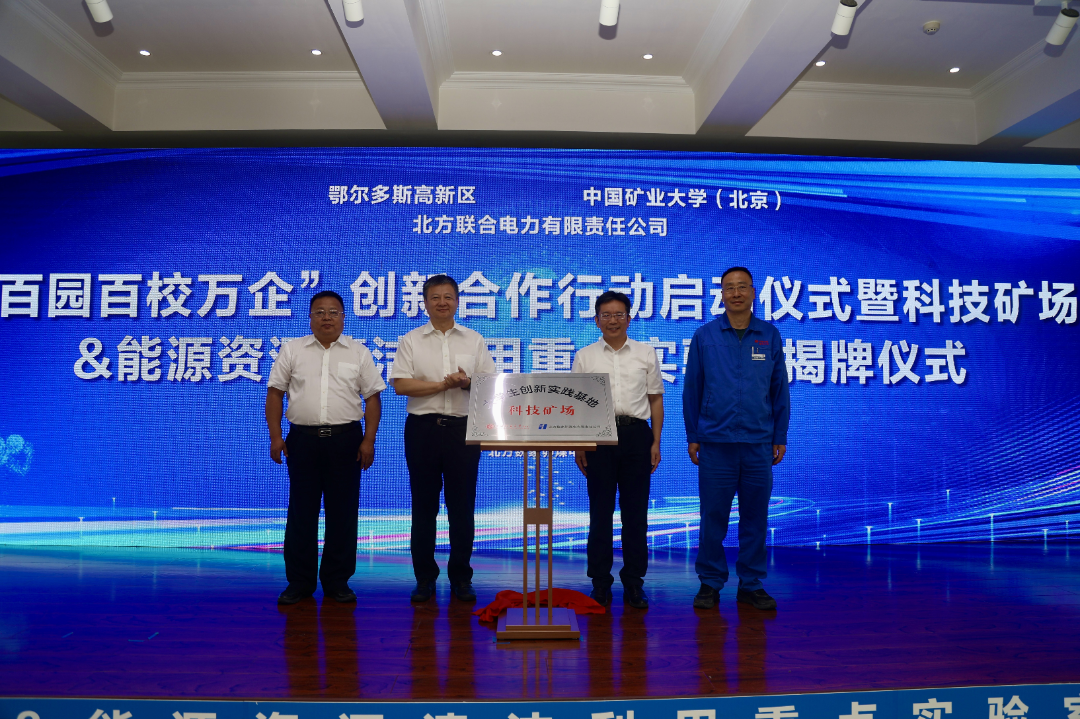 本网讯 7月15日,“百园百校万企”创新合作行动启动仪式暨科技矿场&能源资源清洁利用重点实验室揭牌仪式在北方魏家峁煤电有限责任公司举行。中国矿业大学(北京)党委副书记、校长刘波,北方联合电力有限责任公司党委副书记、总经理李悦,鄂尔多斯高新区党工委副书记、管委会主任张鹏程等出席,活动由中国矿业大学(北京)副校长崔希民主持。