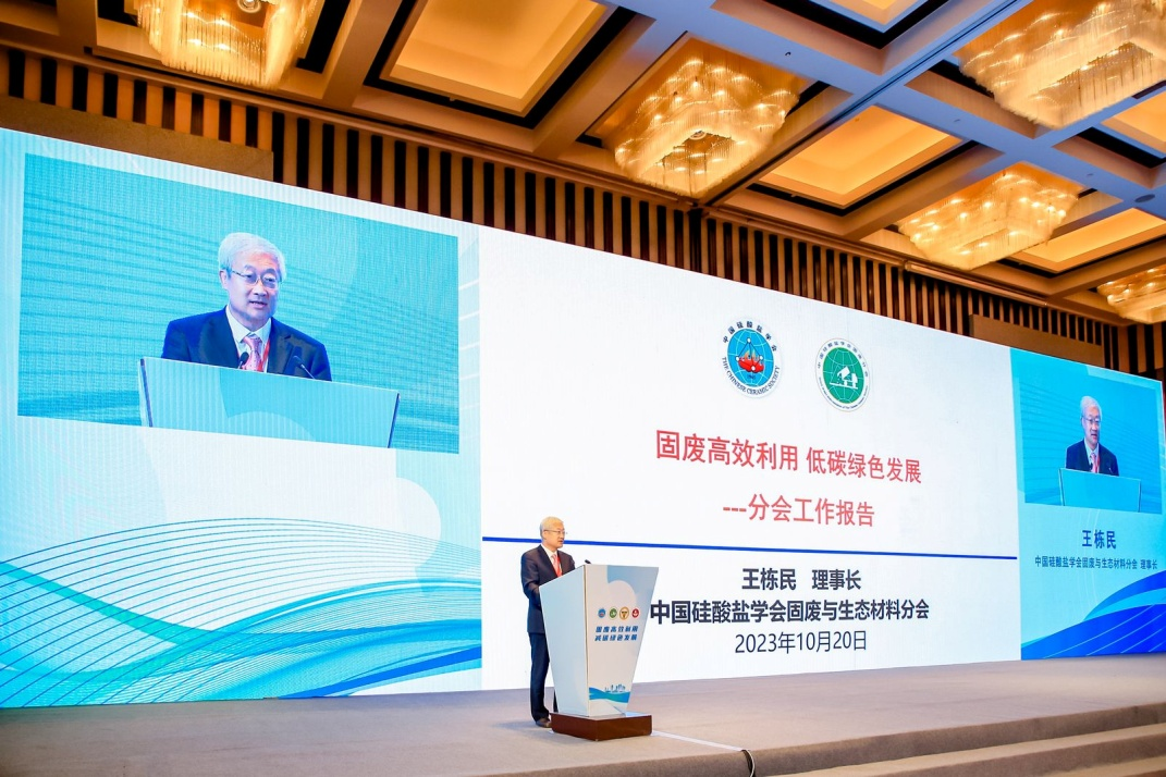 中国硅酸盐学会固废与生态材料分会理事长、中国矿业大学(北京)王栋民教授在作分会工作报告,回顾了自2015年成立以来的主要工作成绩,重点阐述了第二届理事会成立后两年来理事会所做的重要工作,并对未来两年的工作做了整体部署与安排。王栋民的理事会工作报告,重点突出学术交流前沿、人才交流、社会服务等工作。他在报告中总结,分会理事会在固废利用领域做了大量工作,取得了一定进展,未来将继续为促进大宗工业和城市固废绿色、低碳、高质量、规模化利用不懈努力,支持“大宗工业固废基地”和“无废城市”建设。