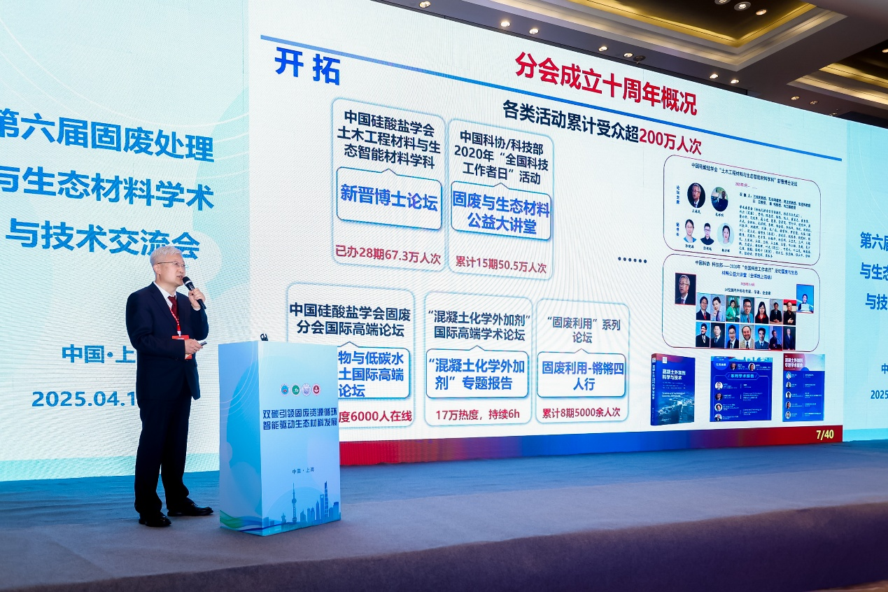 本网讯 4月18日至20日,由中国硅酸盐学会主办,中国硅酸盐学会固废与生态材料分会、同济大学、中国矿业大学(北京)联合承办的第六届固废处理与生态材料学术与技术交流会在上海召开。
