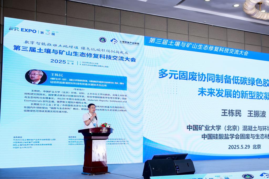 中国矿业大学(北京)教授、中国硅酸盐学会固废与生态材料分会理事长王栋民作主旨报告
