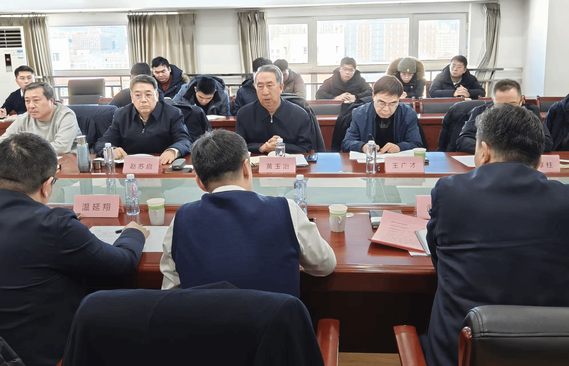 第十四届全国政协农业和农村委员会副主任、中国矿山安全学会会长、应急管理部原党委委员、副部长、国家矿山安全监察局原党组书记、局长黄玉治,中国矿山安全学会副会长、国家矿山安全监察局调查统计司原司长赵苏启,中国地质大学(北京)教授王广才,中国安全生产科学研究院洪益青首席专家、中国中煤能源集团有限公司总监王厚柱等出席会议并对项目进行了研讨评审。新疆维吾尔自治区应急管理厅副处长胡疆峰,哈密市人民政府副市长李云涛、副秘书长温延翔,哈密市应急管理局煤监科科长刘建国,大南湖四家煤矿企业代表、中国工程院院士、学校教授武强出席会议。